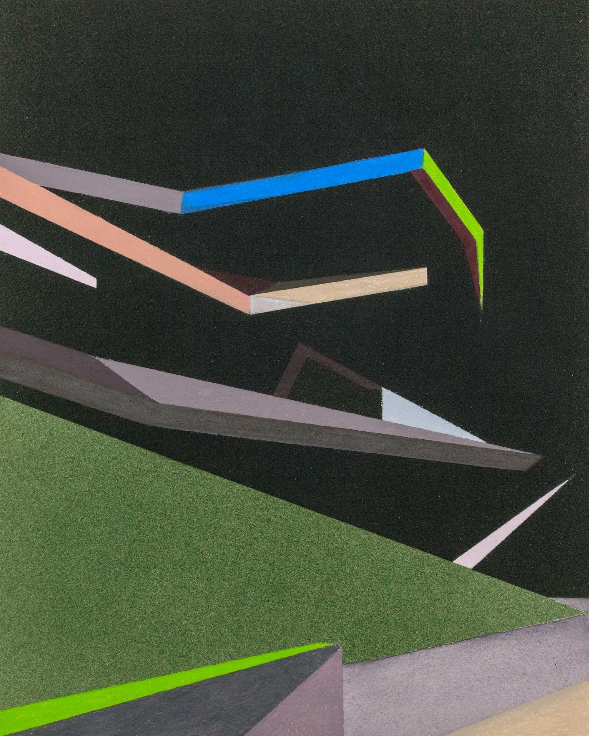 My works are about architecture. For years now, I’ve hungered to make angled surfaces and lines in space. Surfaces, or planes and lines, create new spaces, sightlines and axis in and of themselves, whether they be sculptures or images. Quite often, the shapes are determined by the space itself. It might be the form of the ceiling, I’d like to accentuate or disrupt, the windows, or quite simply the proportions of a given space.